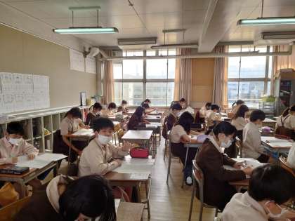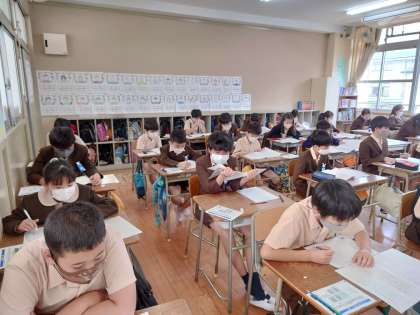 6年生、今日は全国学力学習状況調査を受けています。今年は国語、算数、理科、質問紙です。