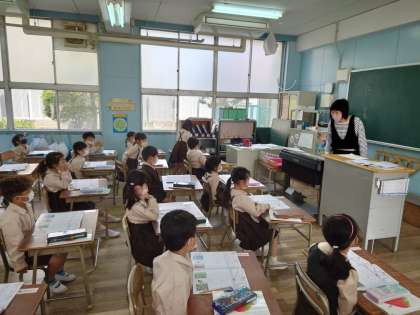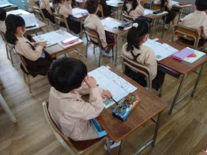 1年生がひらがなを学習していました。ゆっくり丁寧に書いています。