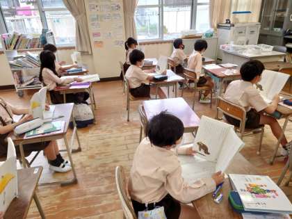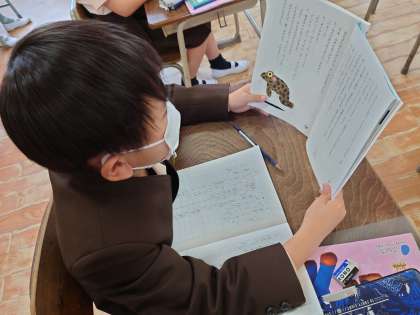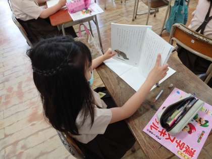 3年生が国語をしていました。スイセンのラッパを読んでいました。