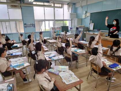 一年生が算数をしていました。ものと数字を関連づけていました。