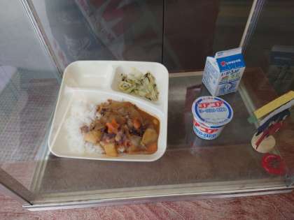 今日のカレーライスには栄養たっぷり大豆が入っています。