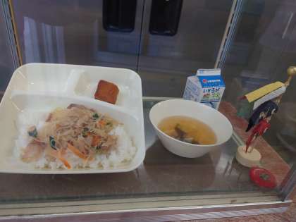 湯葉のすまし汁には、わかめと細切りのたけのこが入っています。