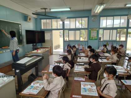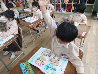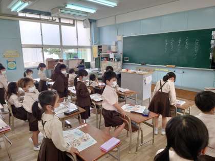 1年生が道徳をしていました。楽しい学校ということで4月を振り返っていました。