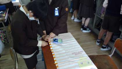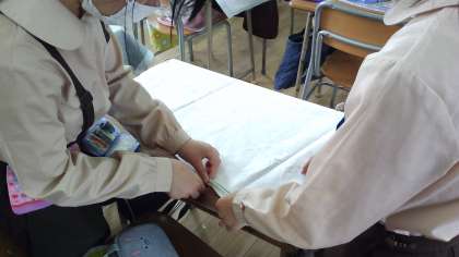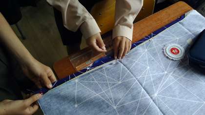 まち針を打つのに悪戦苦闘しながら取り組んでいます。