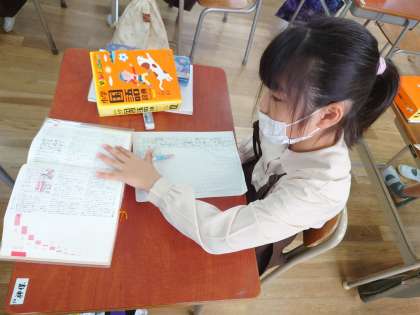 3年生が国語をしていました。国語辞典を使っています。