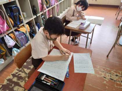 2年生が国語をしていました。こんなことをしているよの単元で文章にしていました。