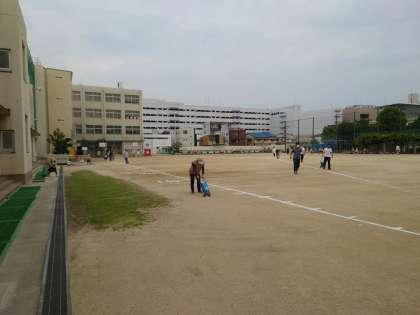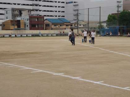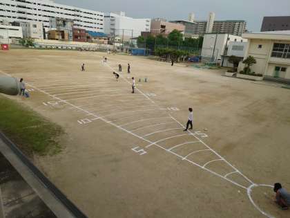 今日は明日から行われるスポーツテストの準備をしています。写真はソフトボール投げの準備です。完成にはもう少し時間がかかります。
