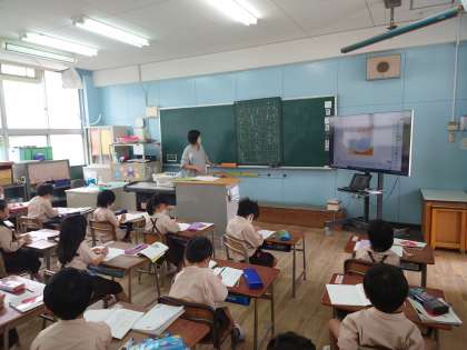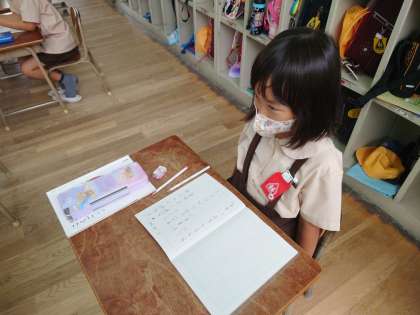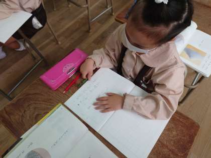 一年生が国語をしていました。ノートに丁寧に文字を書いていました。