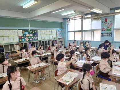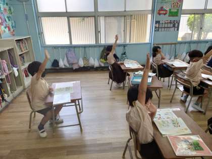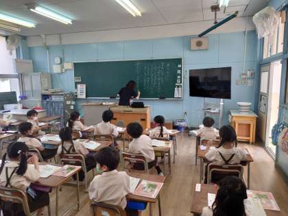 1年生が道徳をしていました。あいさつのお勉強でした。