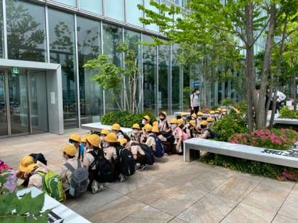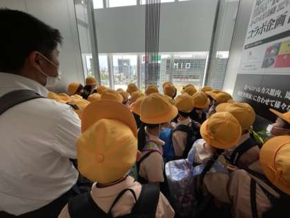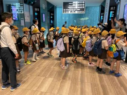 ハルカスに着きました。まずは、16階まで行きます。エレベーターが動き出し、外が見えて、だんだん高くなっていく時に、歓声があがっていました。