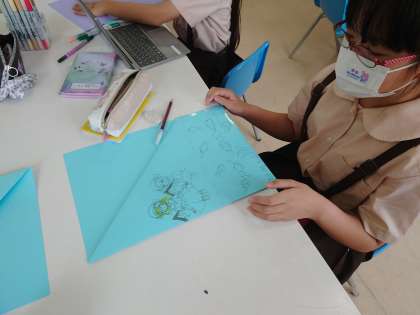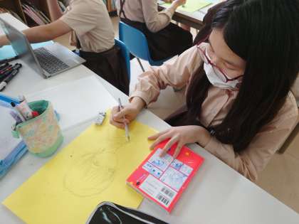 マンガクラブでは、タブレットや本の絵を手本にそれぞれお気に入りの絵をかいていました。