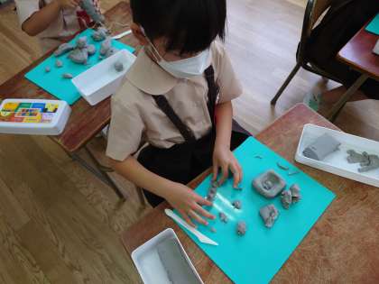 1年生校外学習が延期になりました。今日は学校でできることをしていきます。2時間目はねんどをしていました。