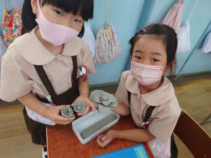 ねんどでいろいろなものを作っています。色々と見せに来てくれました。
