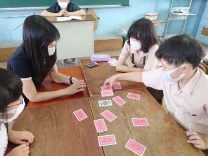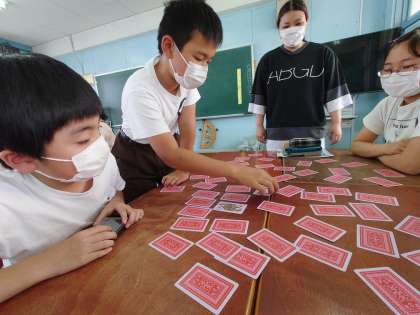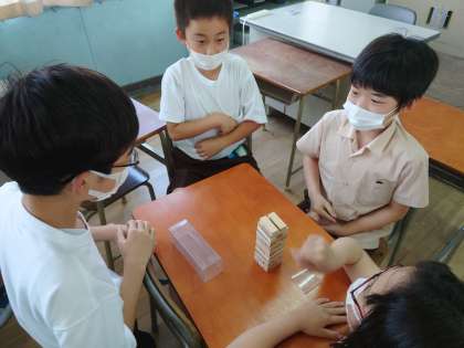 ゲームクラブはいろいろな学年で四人組を組んで活動しています。