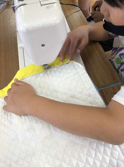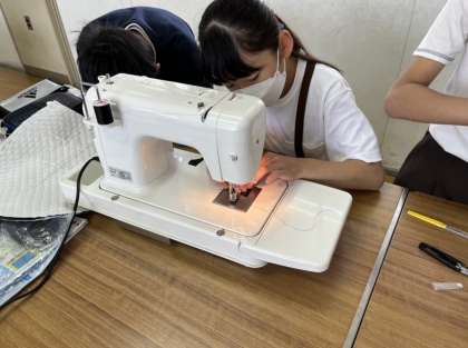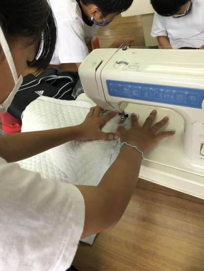 初めてのミシンですが、友だちと協力しながら頑張って作っています。