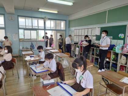今日は教育センターから指導者の先生に来てもらい授業を見てもらいました。他の先生も見に来て子ども達ははりきっていました。