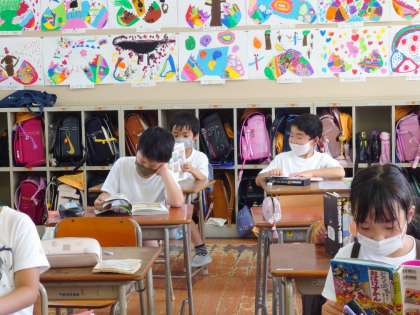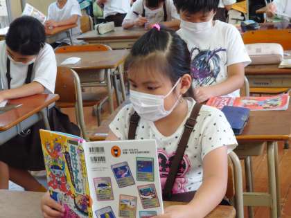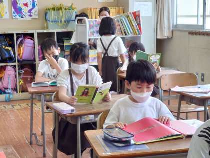 2年生、漢字ドリルを終え、残った時間は静かに本を読んでいます。