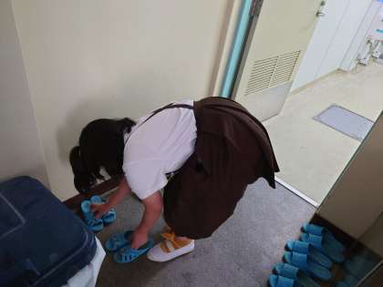 通りがかりの3年生児童がトイレのくつを揃えてくれていました。気持ちよく一年生も使えます。ありがとう。