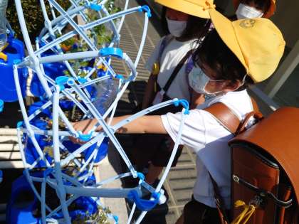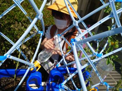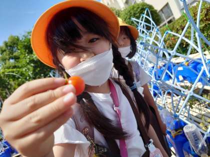 下校の時間、ミニトマトを収穫している児童がいました。できるのを楽しみにして毎日見に来ているそうです。