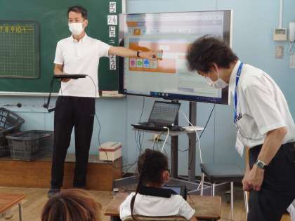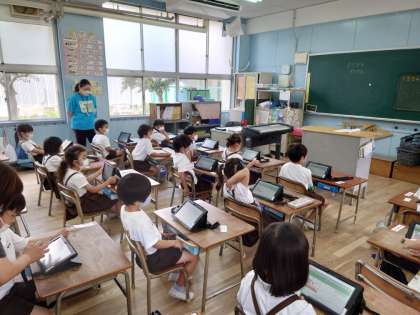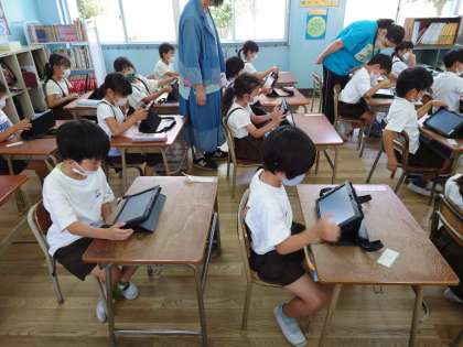 1年生がタブレットを使っていました。心の天気、チームズ、ナビマ、色々挑戦してみました。