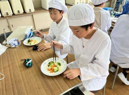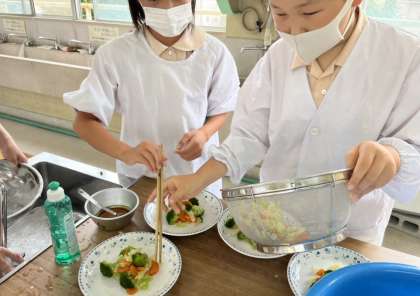 自分たちで作ったサラダが美味しいとみんな喜んで食べていました。