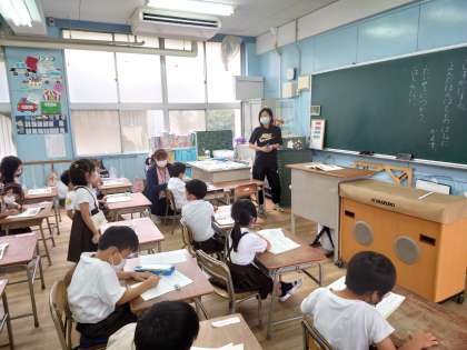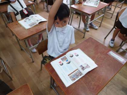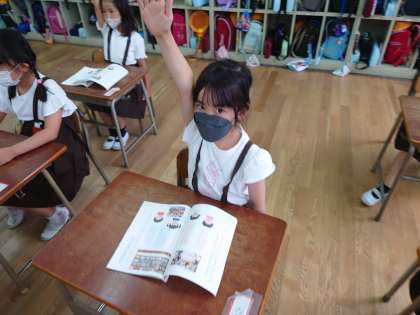 1年生が国語をしていました。図書館はどんなところという単元です。