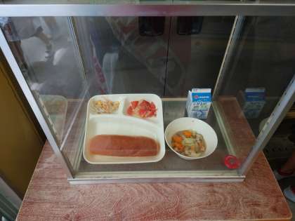 じゃがいもとトマトのチーズ焼きはじゃかいもとベーコンを混ぜ合わせて、トマトとチーズをのせて蒸し焼きにしています。