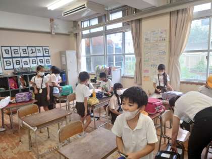 学習をしたり、お楽しみ会をしたり、通知票を返したり、整理整頓をしたりと学級ごとに最後の1時間を過ごしています。