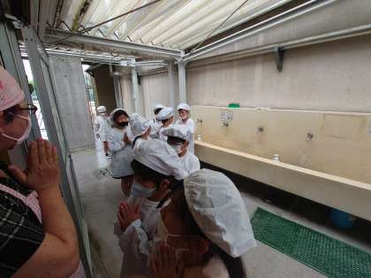 冬瓜の煮物、冬瓜は夏にたくさん取れる野菜です。今日は、生姜で味付けし、でんぷんでとろみを出しています。