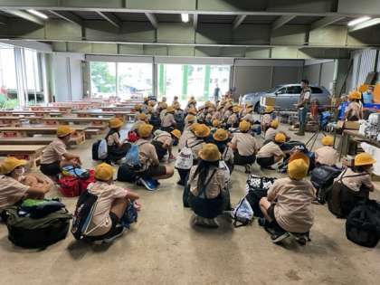 開所式、宿舎の方への挨拶、注意事項の説明、みんな真剣に聞いていました。これから部屋に入り、その後避難訓練をします。