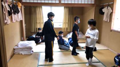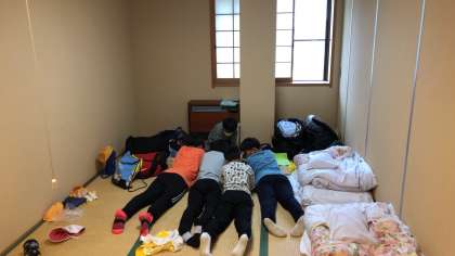 短い時間ですが、トランプをしたりしながら、ゆったりとした時間を過ごしています。もうすぐ集合時間です。遅れないように。