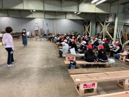 飯盒炊さんが始まりました。班ごとに役割分担して、カレーをつくります。みんな美味しいカレーをつくるために、真剣に説明を聞いています。
