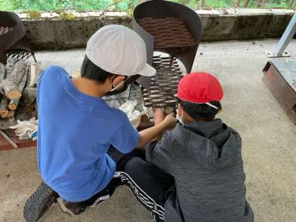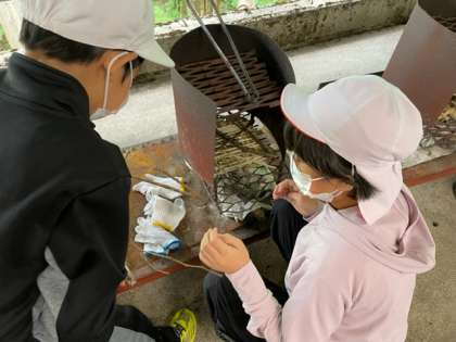 こちらは、火おこしの担当です。電気、ガスのありがたさがわかりますか?