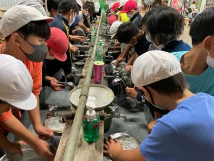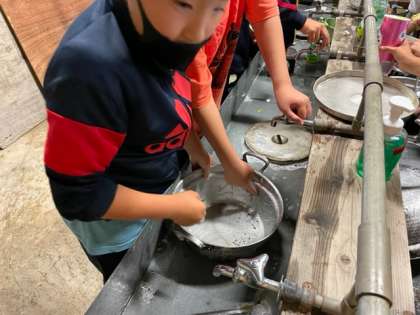 カレーも美味しくいただき、あとは、飯盒、お鍋などお借りした時よりもきれいにして返します。みんな頑張ってきれいにしています。