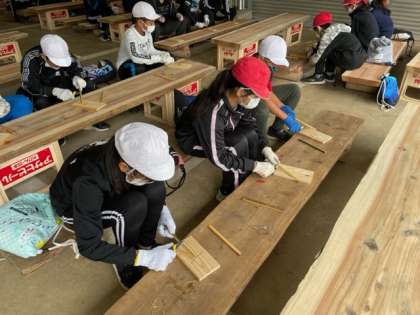 おはし作りが始まりました。ナイフを使うので、説明を聞く様子もいつもより真剣です。