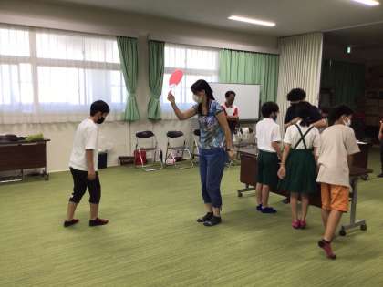 名前を呼び合ったり、キャラクターをつくったり、ダンスを英語で振り付けを言ってもらって踊りました。鶴見小からは3人の先生が参加しています。