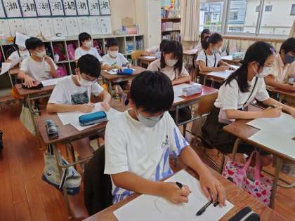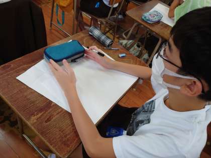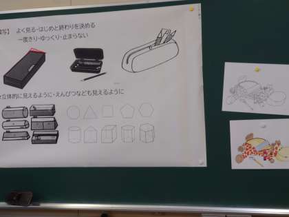 6年生が図工をしていました。筆箱の絵をかくようです。
