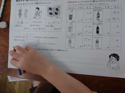 4年生で栄養教育の授業がありました。みどり小学校の栄養教諭の方に指導してもらっています。