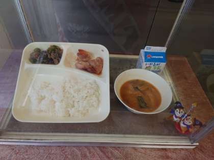 鶏肉の照り焼きは砂糖、醤油、料理酒で味付けしています。焼き物機で焼いているので、香りも味も最高ですよ。