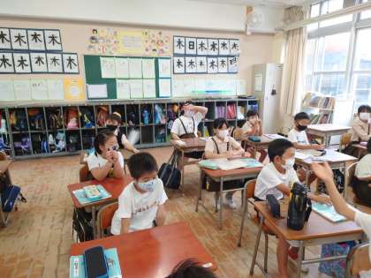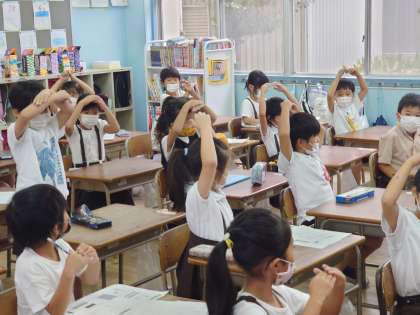 今日は木曜日なので集会がありました。放送集会でした。○?クイズでした