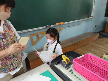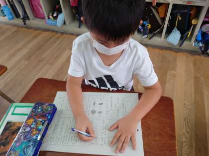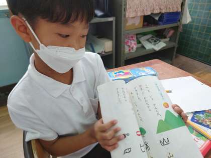 1年生が音読をしていました。一人ずつ、シールをもらっていました。