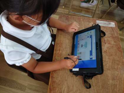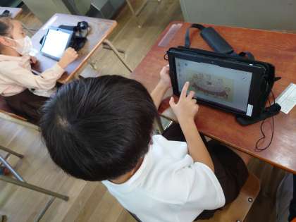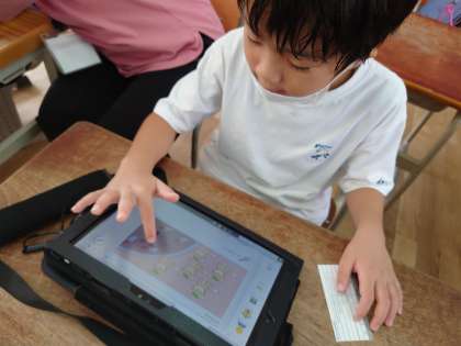 デジタルドリルをしています。画面が変わるたびに嬉しそうです。