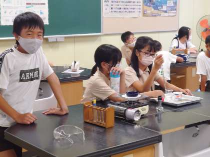 6年生が理科をしていました。塩酸に溶けた金属は元の金属と同じかということを調べています。