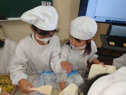 チンゲンサイとコーンの炒めものには、鳥のささみをほぐしたものが入っています。