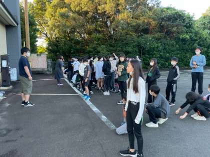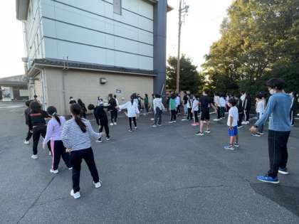おはようございます。修学旅行2日め活動開始です。みんな元気です。起床後、朝の会でラジオ体操をしています。今日も一日、全力で楽しみます。この後、朝食です。