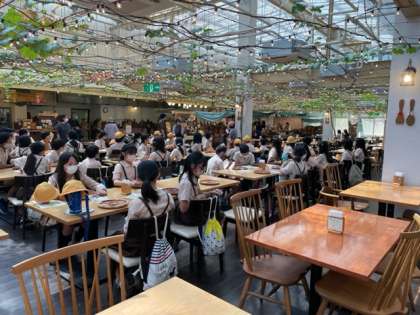 オリエンテーリングの後、今から昼食になります。バイキングです。お腹いっぱい食べてください。