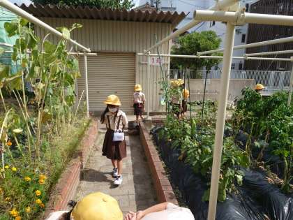 学習園ではよく虫が泣いていますがお昼間はなかなか見つからないようです。