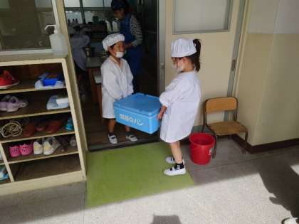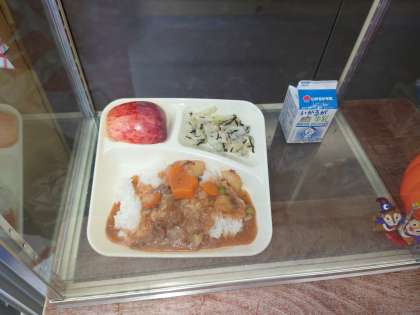 今日のハヤシライスはアレルギー対応で小麦粉のかわりに米粉を使用しています。