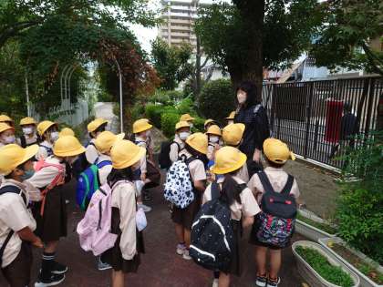 1年生の校外学習、天候が心配されましたが天王寺動物園に向けて出発しました。