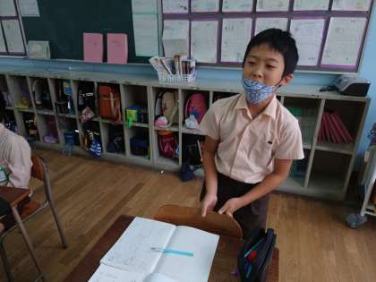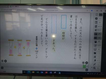 4年生が国語をしていました。すぎさったという言葉を使って文を考えていました。